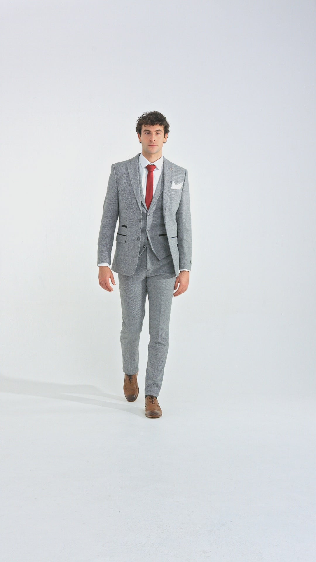 Men's Light Grey 3 Piece Tweed Herringbone Suit - STZ11