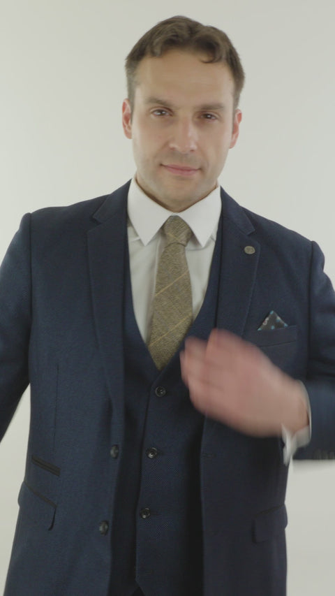 - Mens Tailored Fit Blue Black 3 Piece Suit